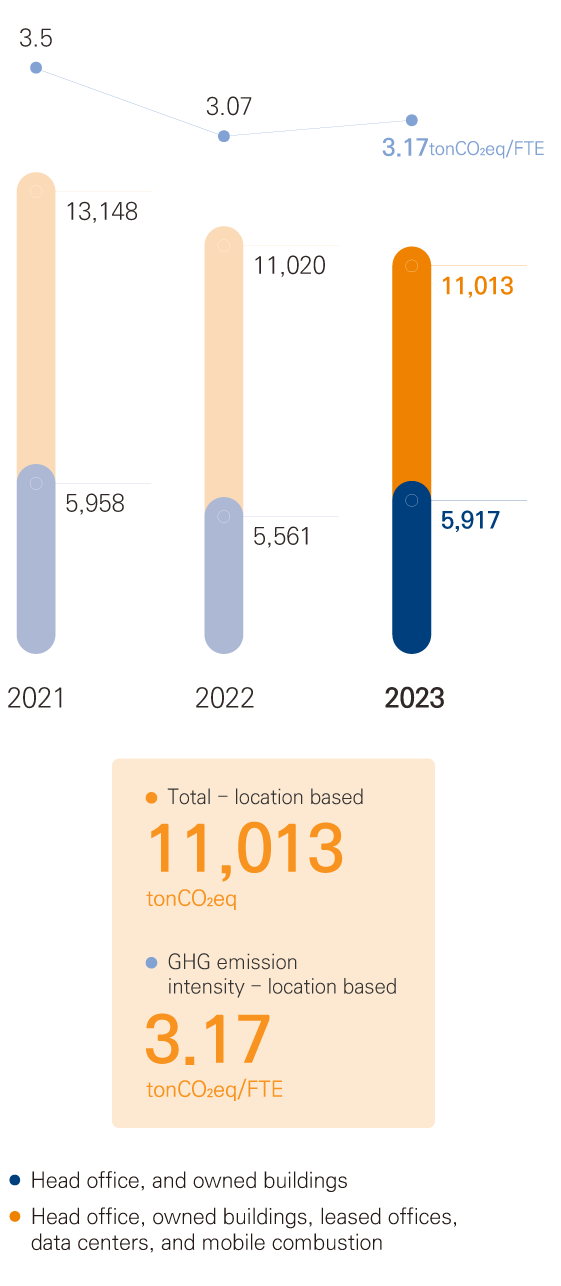 We have been reducing unnecessary energy usage and implementing continuous controls to efficiently reduce energy consumption and GHG emissions. Given the nature of the financial industry, there are almost zero direct GHG emissions caused by energy sources directly owned or managed by Mirae Asset Securities.